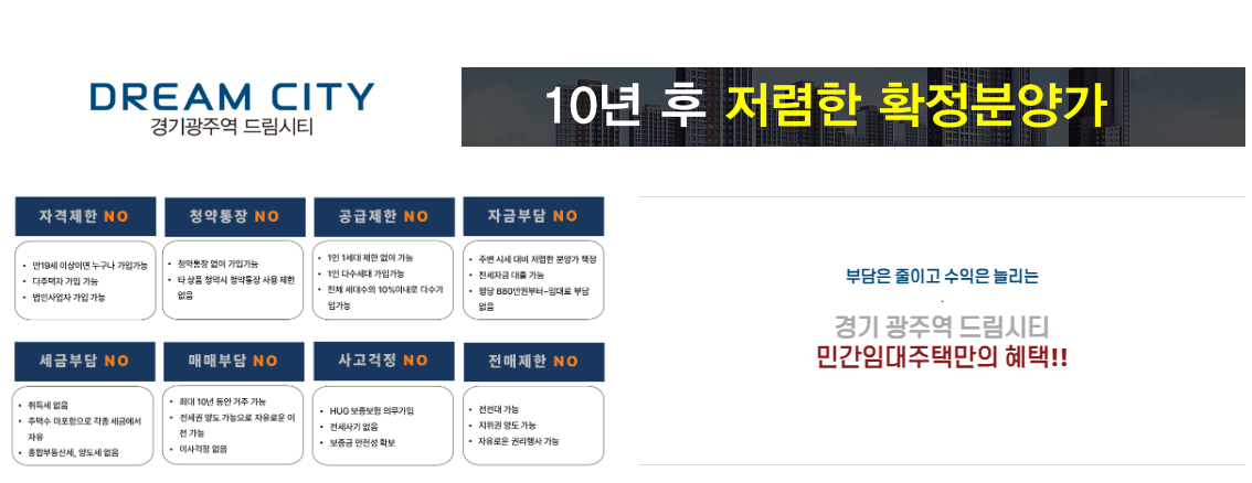 경기광주는 교통, 주거, 산업 측면에서 꾸준히 발전하고 있는 지역입니다. 광주시의 법원과 종합터미널, 대규모 쇼핑몰 등은 이 지역을 중심 상권으로 성장시키고 있으며, 드림시티는 이 지역의 랜드마크가 될 가능성이 큽니다. - 교통망 확장