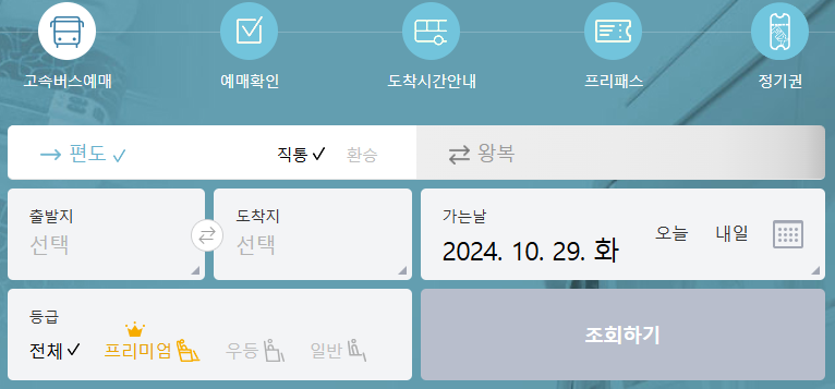2) 좌석 선택 및 우등, 프리미엄 버스