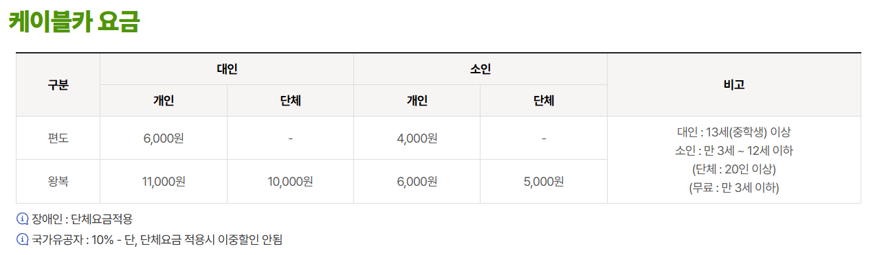 - 편도권: 대인 6,000원 / 소인 4,000원