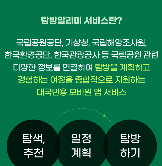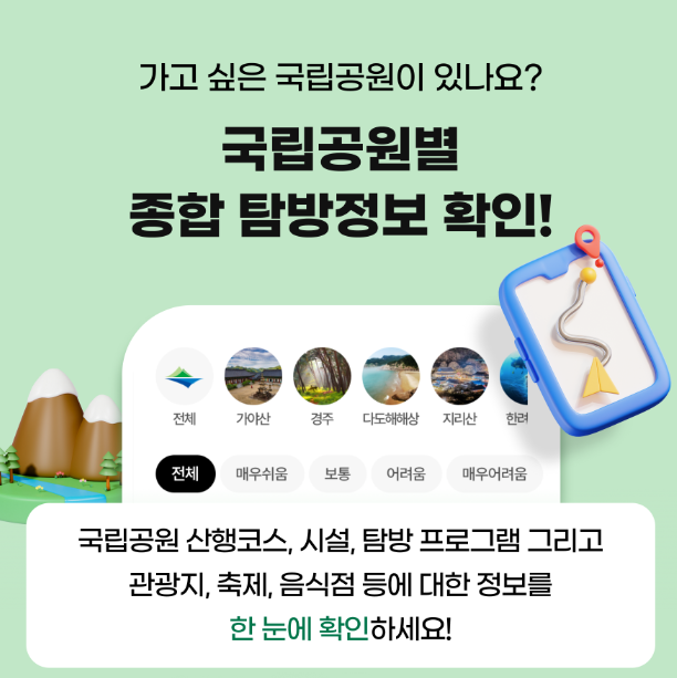 국립공원 탐방알리미 앱과 함께 안전하고 즐거운 국립공원 탐방을 만끽해보세요!