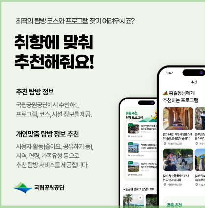 | 개인 맞춤 추천 | 사용자 취향에 따른 국립공원 추천 계절별 인기 콘텐츠 추천 |