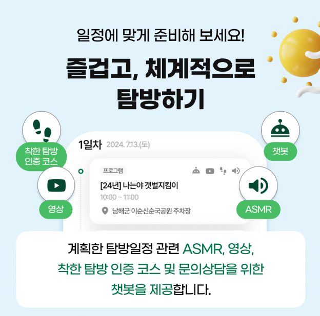 - 참여 방법: 앱 설치 후 탐방 일정 만들기 기능을 활용해 자신만의 일정을 생성