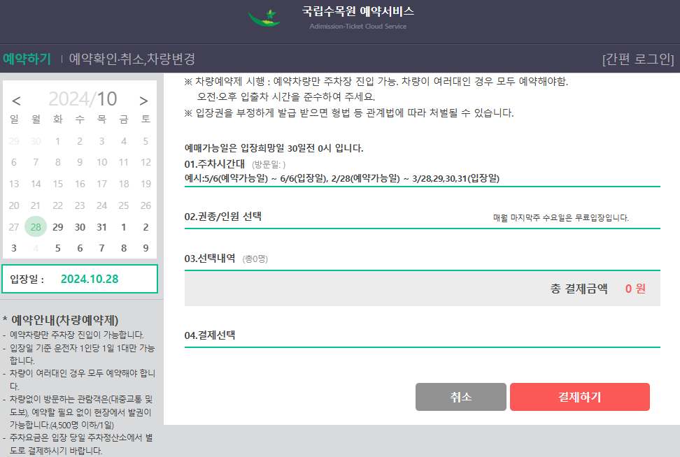 국립수목원 예약 방법