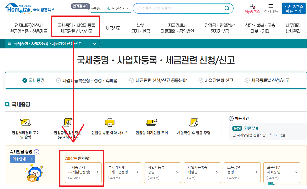 - 홈택스와 정부24 모두 24시간 온라인 발급이 가능하지만, 시스템 점검 시간에는 일시적으로 발급이 제한될 수 있으니 사전에 확인하시기 바랍니다.
