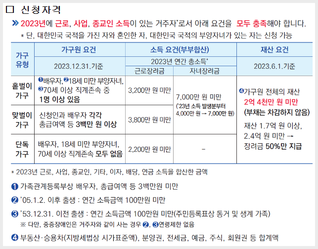 - 가구 유형에 따른 소득 요건 충족