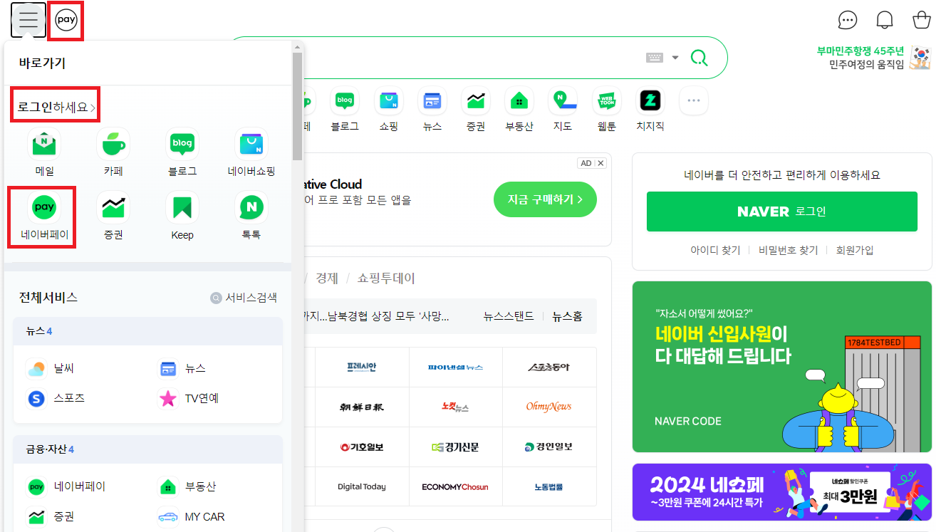 네이버페이 카드등록 방법