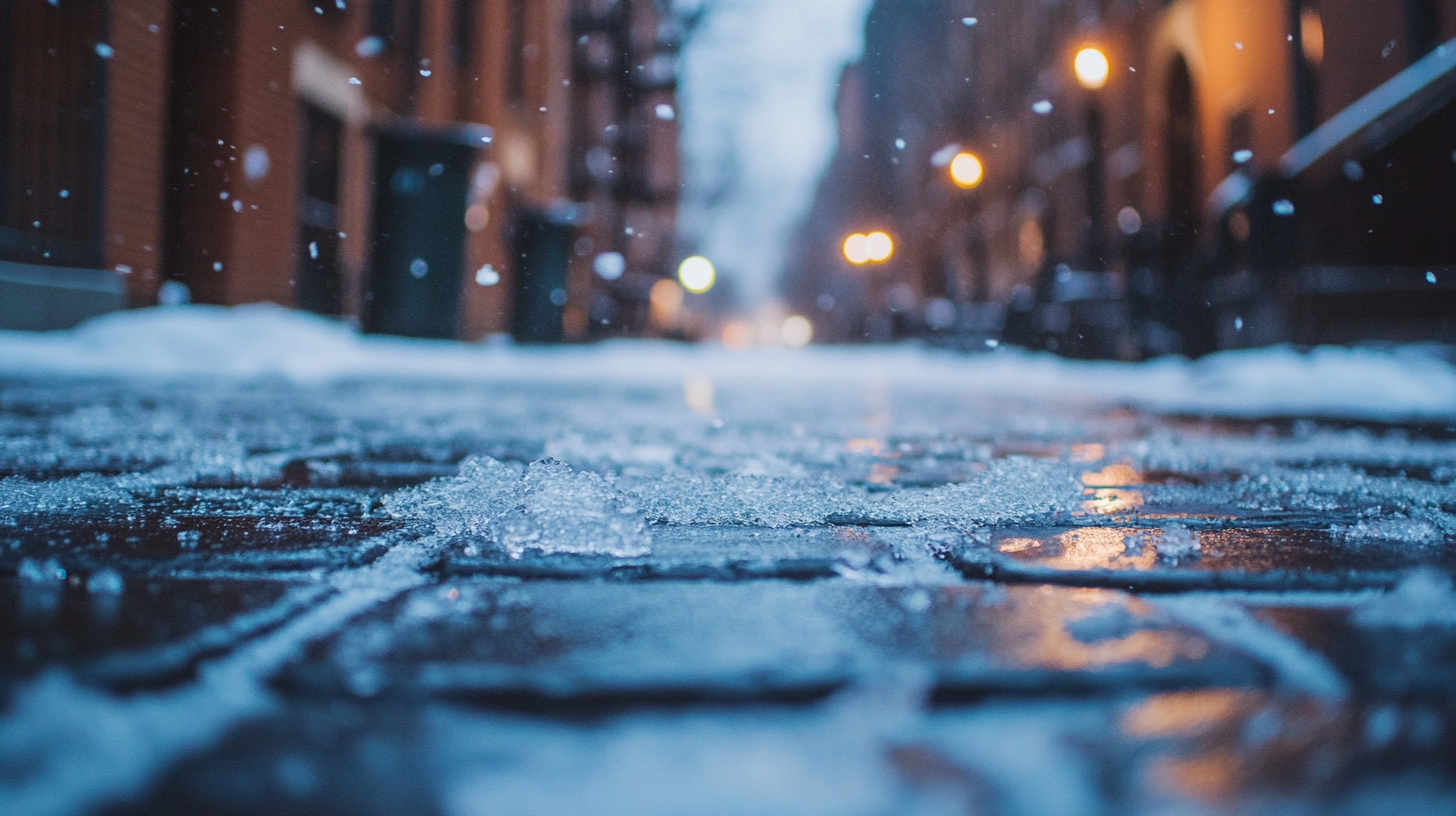 - 도로 표면에 얇은 얼음이 형성되어 눈에 잘 보이지 않는 상태.