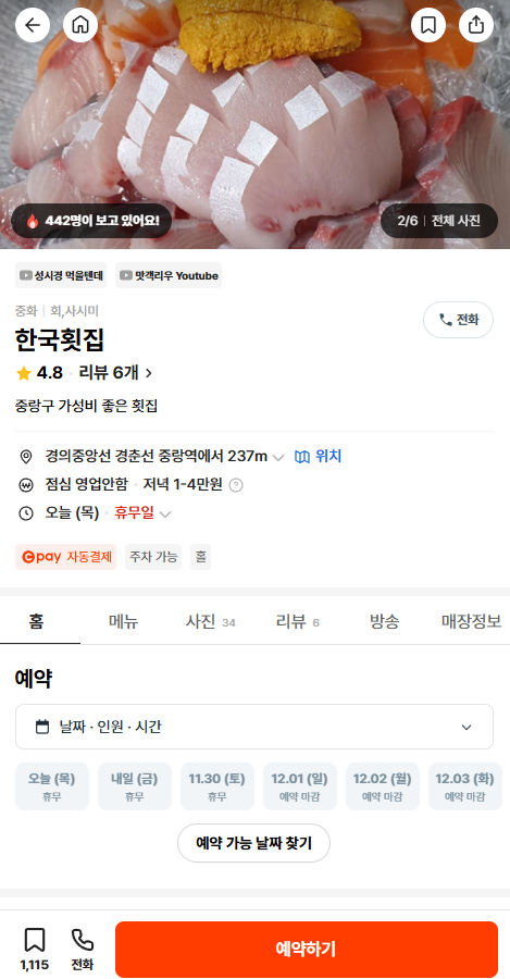 서울 중랑구에 위치한 특별한 오마카세 맛집, 한국횟집이 최근 성시경의 인기 프로그램 ‘먹을텐데’에 소개되며 더욱 주목받고 있습니다. 배우 임지연까지 감탄한 이곳은 뛰어난 가성비와 신선한 해산물로 유명해 중랑구 오마카세 맛집을 찾는 사람들에게 강력 추천되는 곳인데요. 이 글에서는 한국횟집의 위치, 오마카세 메뉴, 그리고 예약 방법까지 세세하게 알려드리겠습니다.