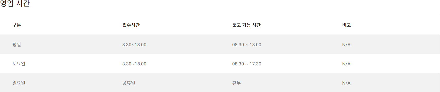 - 평일: 오전 8시 30분 ~ 오후 6시