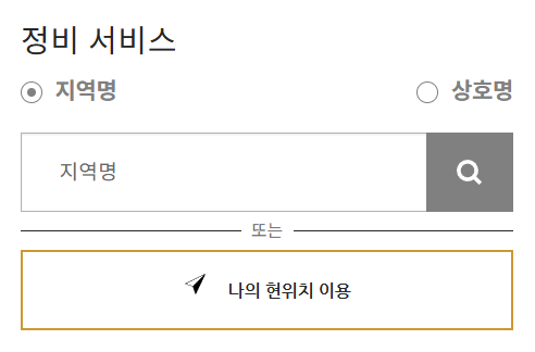 - 지역명 또는 현재 위치 입력: 본인의 주소 또는 현재 위치를 입력합니다.