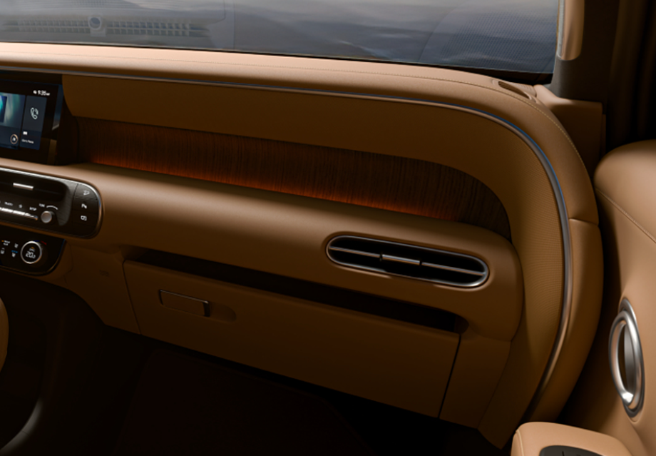 - 9인승 모델: 1열 가운데 좌석이 센터콘솔로 전환 가능한 유니크한 구조로, 실내 공간 활용도를 극대화.