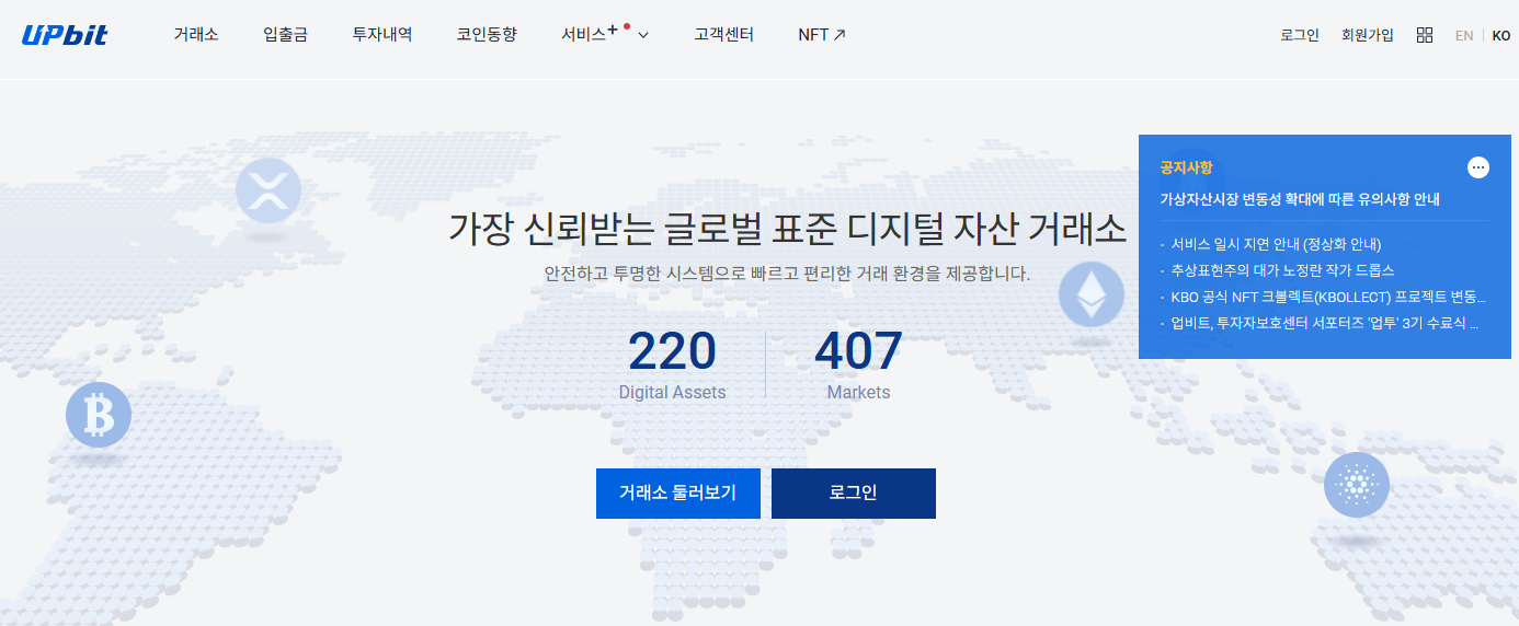 - 로그인: 업비트 웹사이트 또는 모바일 앱에 로그인합니다.