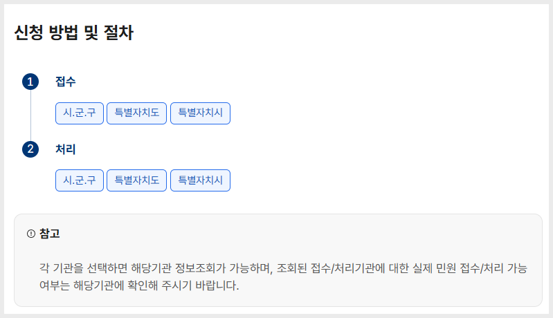 - 필수 서류는 지역에 따라 조금씩 다를 수 있으므로 관할 지자체에 사전 문의를 통해 확인해 주세요.