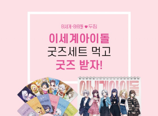 - 두찜 매장에서 이세계아이돌 세트를 주문하면 제공됩니다.