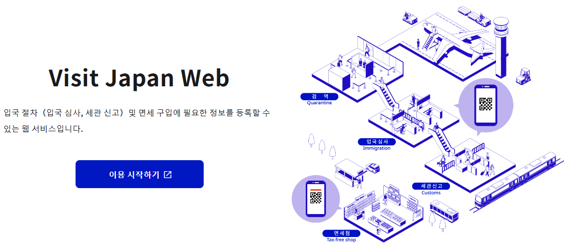 비짓재팬(Visit Japan) 웹은 일본 정부가 입국 수속을 보다 원활하게 하기 위해 제공하는 온라인 사전 등록 시스템입니다. 이 시스템에 입국신고서, 세관 신고서, 건강 상태 등을 미리 입력해두면, 일본 공항에서 입국 시 간편하게 입국 심사를 진행할 수 있습니다. 특히 혼잡한 입국 수속 시간을 줄일 수 있어 여행객들에게 편리합니다.