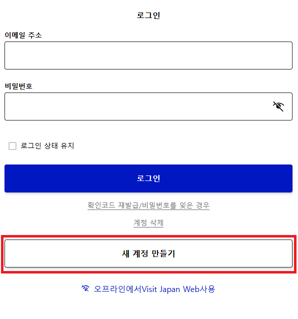 비짓재팬 웹사이트에 접속한 후, 새 계정을 생성합니다. 본인 인증을 위해 이메일 주소가 필요하며, 계정 생성 후 이메일로 받은 링크를 통해 인증을 완료하면 계정이 활성화됩니다.