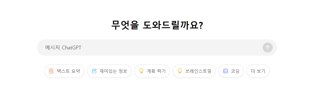 - 챗지피티 이용 시작: 로그인 후 메인 페이지에서 챗지피티와 대화할 수 있는 창이 나타나며, 질문이나 요청을 입력하면 AI가 응답합니다.