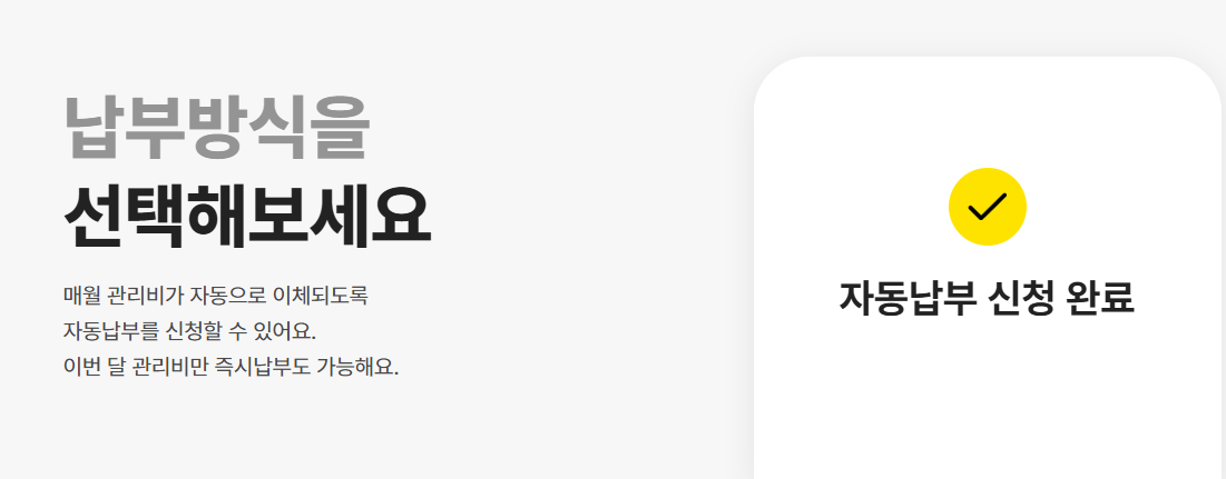 - 매월 정해진 날짜에 관리비가 자동이체로 납부됩니다.