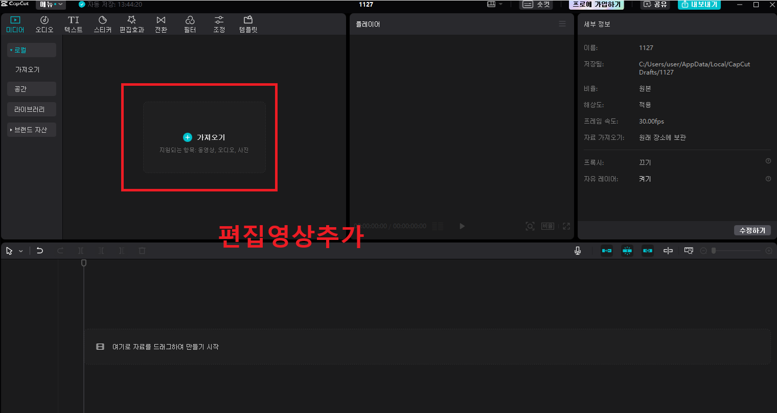 캡컷 PC 기본 사용법