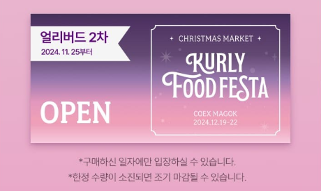 2024년 크리스마스를 더욱 특별하게 만들어줄 대규모 식품 축제, 컬리푸드페스타 2024가 다가옵니다. 이번 행사는 전 세계 미식 트렌드를 한자리에서 경험할 수 있는 기회로, 다양한 맛집과 F&B 브랜드, 특별한 체험 이벤트가 준비되어 있습니다. 코엑스에서 개최되는 이번 축제는 "모두를 위한 컬리스마스(Merry Kurlysmas for All)"라는 슬로건 아래 진행되며, 크리스마스 분위기 속에서 색다른 미식의 즐거움을 제공합니다.