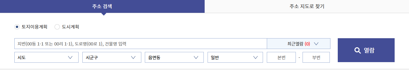 | 3 | 주소 검색창에 확인할 토지의 주소 입력 |