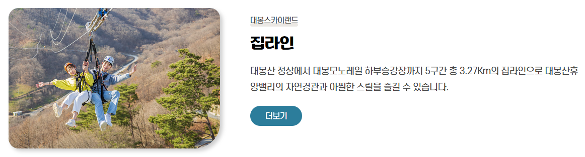 | 주의사항 | - 성수기: 일주일 전 예약 권장 - 모노레일: 예약 30분 전 셔틀버스 탑승 - 짚라인: 예약 1시간 전 셔틀버스 탑승 - 지각 시 탑승 불가 및 환불 불가 |
