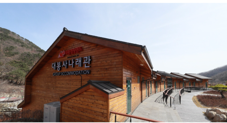 - 대봉캠핑랜드는 자연 속 숙박시설 39실과 캠핑시설 14개소를 갖추고 있습니다