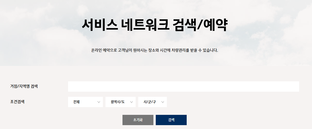 - 서비스센터 선택: 위치 정보를 기반으로 가까운 서비스센터를 찾거나, 원하는 지역명을 입력하여 검색할 수 있습니다.