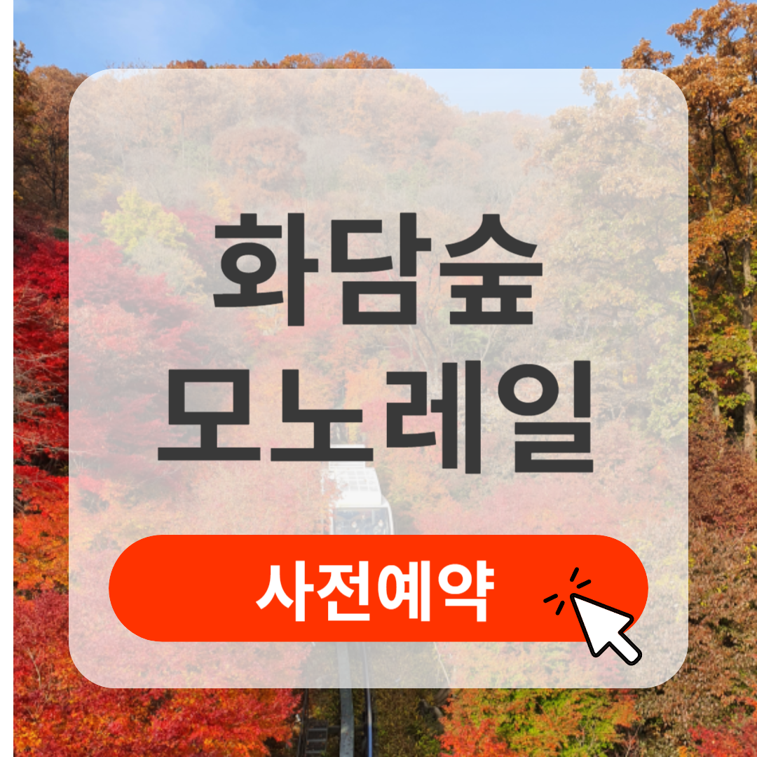 모노레일은 사전 예약제로 운영되며, 화담숲 입장권을 먼저 구입한 후 예약할 수 있습니다. 단풍철에는 모노레일 티켓이 빠르게 매진될 수 있으므로 입장권 예매와 동시에 모노레일도 함께 예약하는 것이 좋습니다.