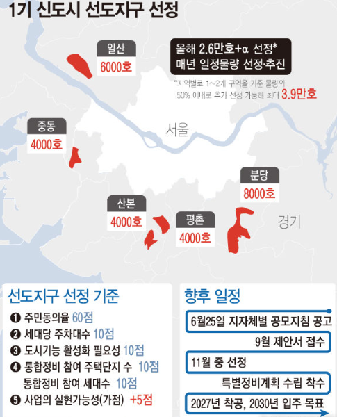 정부는 2027년 착공, 2030년 첫 입주를 목표로 하고 있으며, 선도지구에 대한 행정 및 금융 지원을 제공할 계획입니다.