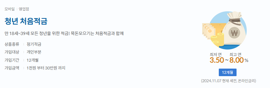 - 월 납입 한도는 30만 원으로, 12개월간 유지 시 우대 금리를 받습니다.