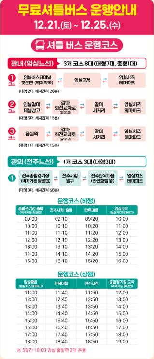 - 운행 경로: 전주종합경기장 → 전주시청 → 한옥마을 → 임실치즈테마파크