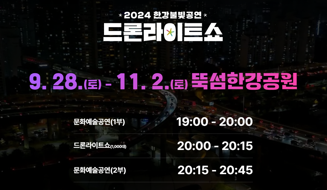 이번 2024 한강 드론쇼는 다양한 주제와 함께 하늘을 수놓을 예정이니, 가을 한강에서 멋진 야경과 드론의 환상적인 공연을 즐겨보세요!