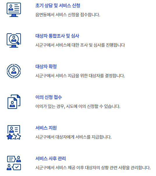 - 해당 지역 복지센터에서 추가적으로 요구하는 서류가 있을 수 있습니다.