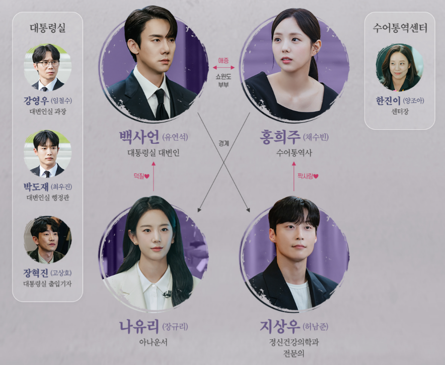 - 유연석: 차갑고 이성적인 대통령실 대변인 백사언의 복잡한 내면을 섬세하게 표현하며 극의 몰입도를 높입니다.